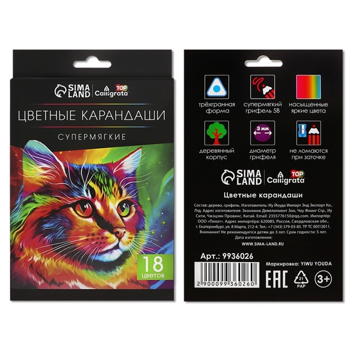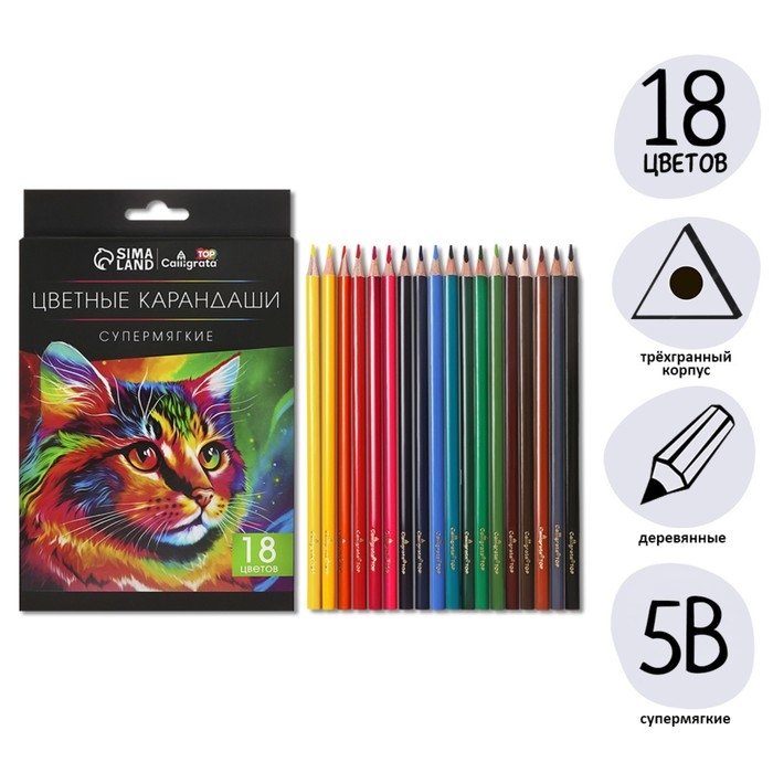 Карандаши 18 цветов TOP Calligrata, в картонной коробке, диаметр грифеля - 3мм, 5B