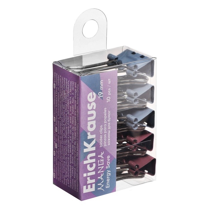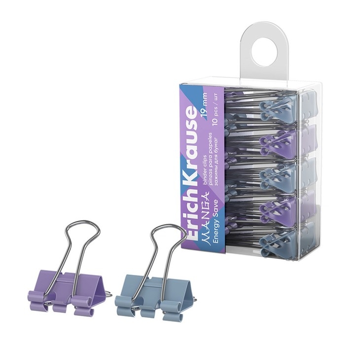 Набор зажимов для бумаг ErichKrause "Energy Save Manga", 19 мм, 10 штук, микс, в пэт-боксе