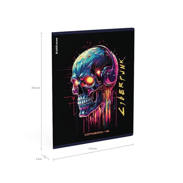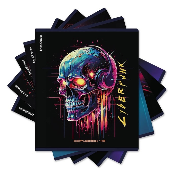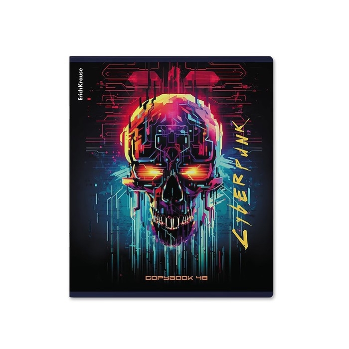 Тетрадь 48 листов в клетку, ErichKrause Cyberpunk, обложка мелованный картон, металлизированная ламинация, твин-лак, блок офсет 100% белизна, МИКС