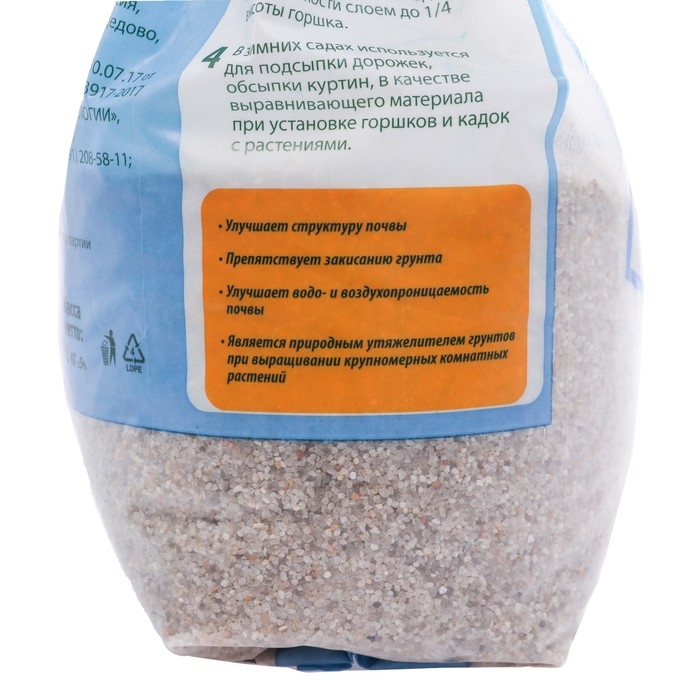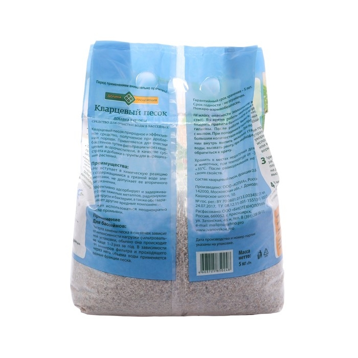 Песок кварцевый Долина Плодородия, фр. 0.8 - 2 мм, 5 кг