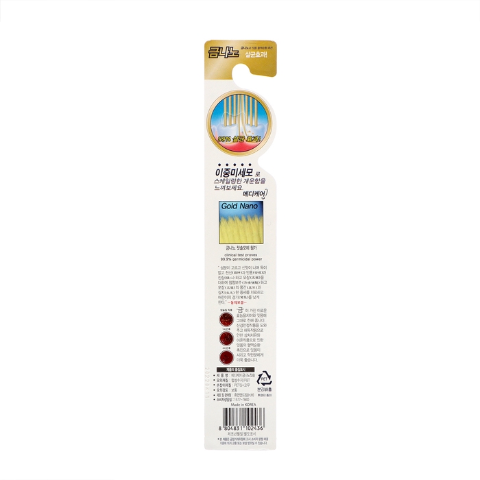 Зубная щетка с ионами золота и технологией двойных щетинок. Обладает антибактериальными свойствами, улучшает кровообращение десен. Рекомендовано для людей с чувствительными деснами. Тончайшие щетинки толщиной до 0.1 мм мягко удаляют налёт и болезнетворные микробы с поверхности зубов, десен и в пространстве между ними.