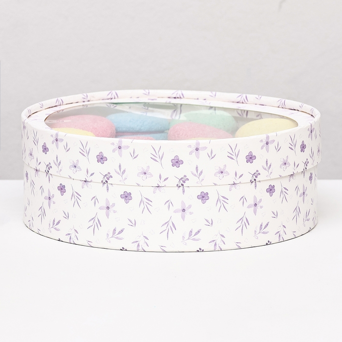 Коробка для макарун тубус с окном "Цветочки", белый, 20 х 6 см