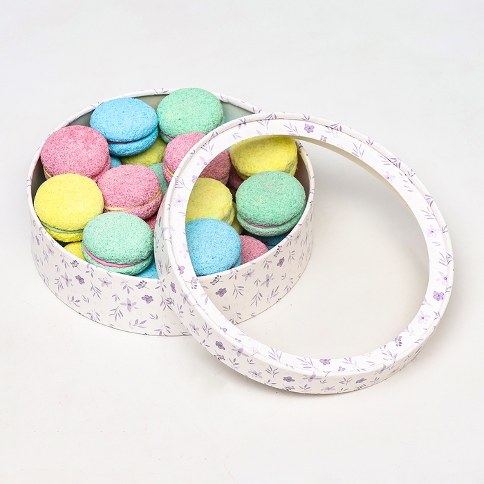 Тубусный дизайн обеспечивает удобство и практичность при упаковке макарун, сохраняя их форму и свежесть во время транспортировки. Однако настоящий шик этой коробки проявляется благодаря инновационному окну, которое позволяет вашим клиентам или получателям любоваться изысканными цветами и текстурой макарун, даже не открывая упаковку.