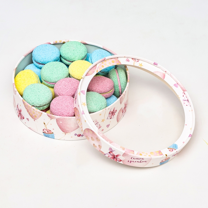 Коробка для макарун тубус с окном "Шарики", 20 х 6 см