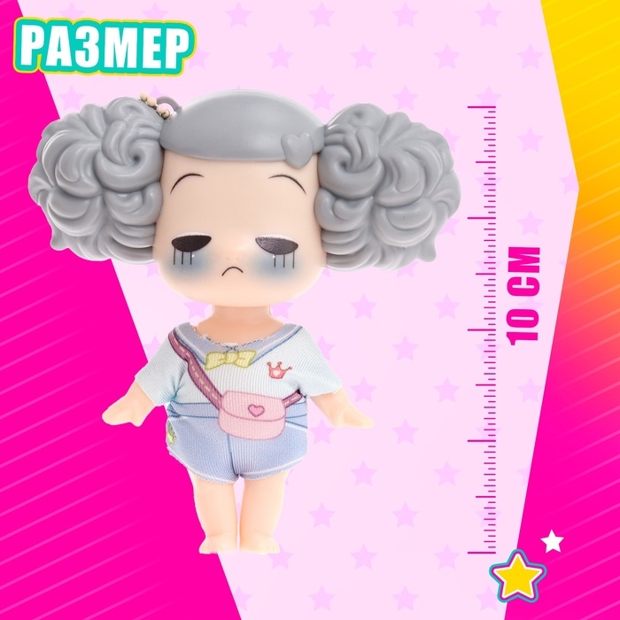 - Куколка высотой 10 см выполнена из качественной резины, что делает ее мягкой и приятной на ощупь
