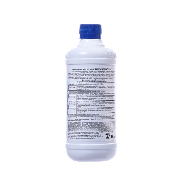 Живые симбиотические бактериальные культуры Bacillus subtilis, штамм 26D (1×109 живых клеток и спор на 1 мл); живые симбиотические бактериальные культуры Bacillus subtilis 1К, 3К, 3Н, 8К, 7К, 3/18 (1×106 клеток на 1 мл); 3 вида гриба-антагониста Trichoderma c общим титром не менее 1х106 клеток на 1 мл; лизаты ризосферных бактерий; 20 L-аминокислот натурального происхождения – 5 %; природные полисахариды, фитогормоны, витамины. Фитоспорин-АС обеспечивает 10 видов биологической защиты растений:1. прямое подавление болезнетворных микробов (патогенов);2. конкуренция с патогенами за элементы питания;3. создание биоплёнки на корнях из полезных микроорганизмов, препятствующих проникновению патогенов;4. выделение веществ-стимуляторов иммунитета растений;5. повышение стрессоустойчивости растений за счет улучшения питания;6. повышение супрессивности почвы – свойства подавлять фитопатогены за счет размножения полезных микрорганизмов;7. выделение гормоноподобных веществ, стимулирующих растения;8. синтез и обеспечение растений необходимыми аминокислотами, витаминами, микро- и макроэлементами, ферментами;9. высокий уровень образования хлорофилла;10. структурирование почвы и повышение её воздухопроницаемости. Класс опасности – 4 (малоопасное вещество). Практически не токсичен для пчел (3 класс опасности – малоопасный). Работать в резиновых перчатках и респираторе. При попадании препарата в глаза – промыть мягкой струей чистой проточной воды; при попадании на кожу – промыть загрязненные места водой с мылом; при случайном проглатывании – вызвать рвоту, прополоскать рот водой и выпить 2-3 таблетки активированного угля, обратиться к врачу.Специфического антидота нет. Лечение симптоматическое.