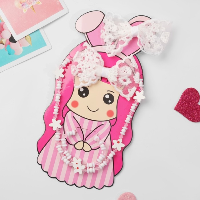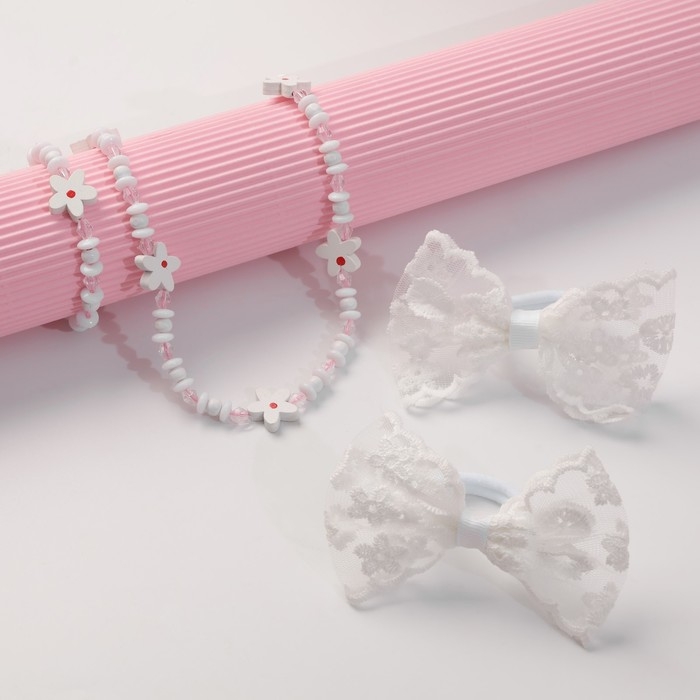 Набор «Выбражулька» 4 предмета: 2 резинки, бусы, браслет, зайка, цвет белый