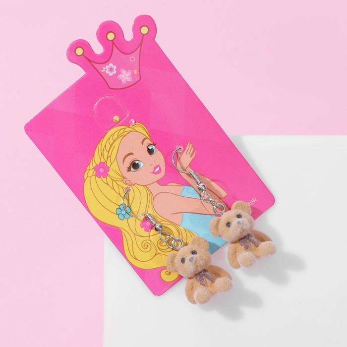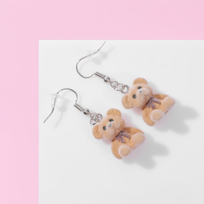 Серьги детские «Выбражулька» медвежонок, цвет коричневый в серебре