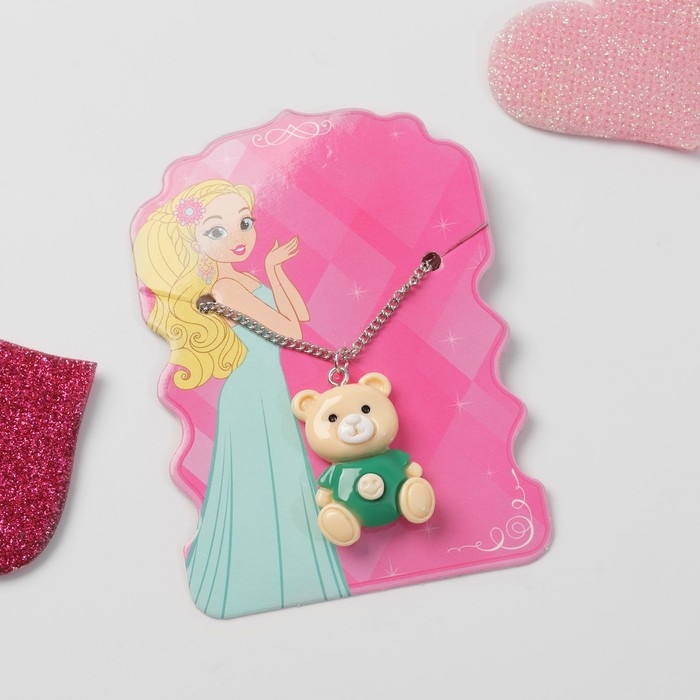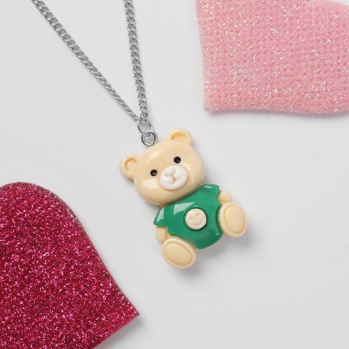 Кулон детский «Выбражулька» медведь, цвет бежево-зелёный