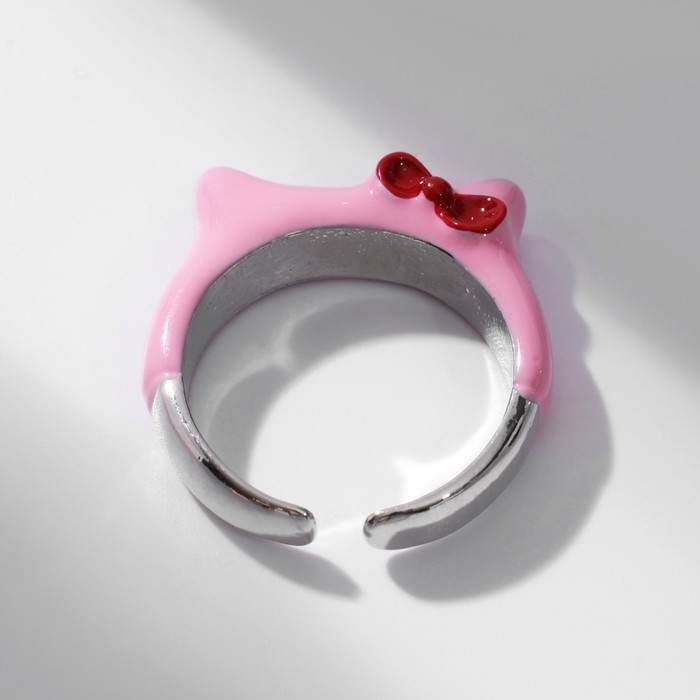 Кольцо «Монстрик» уши с бантиком, цвет розовый в серебре, безразмерное