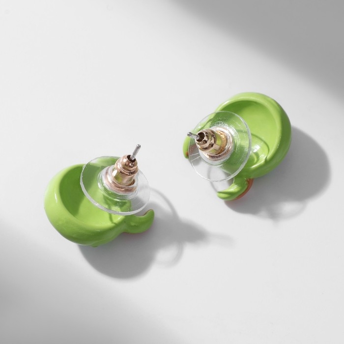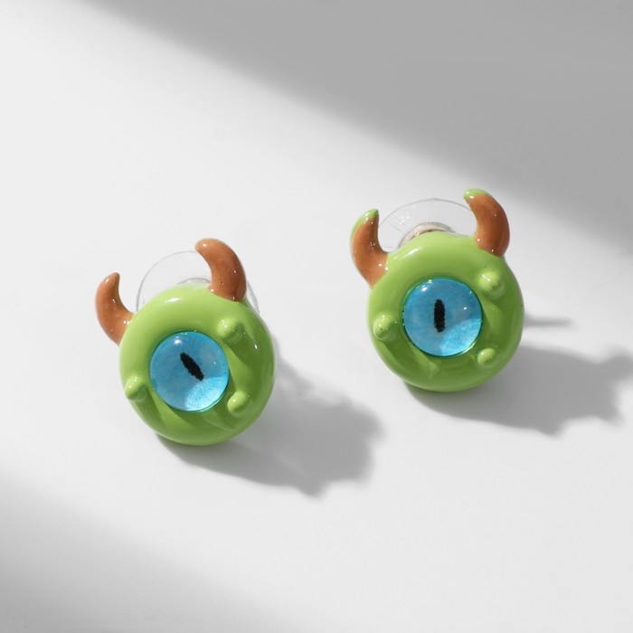 Серьги с эмалью «Монстрики» с рожками, цвет зелёный