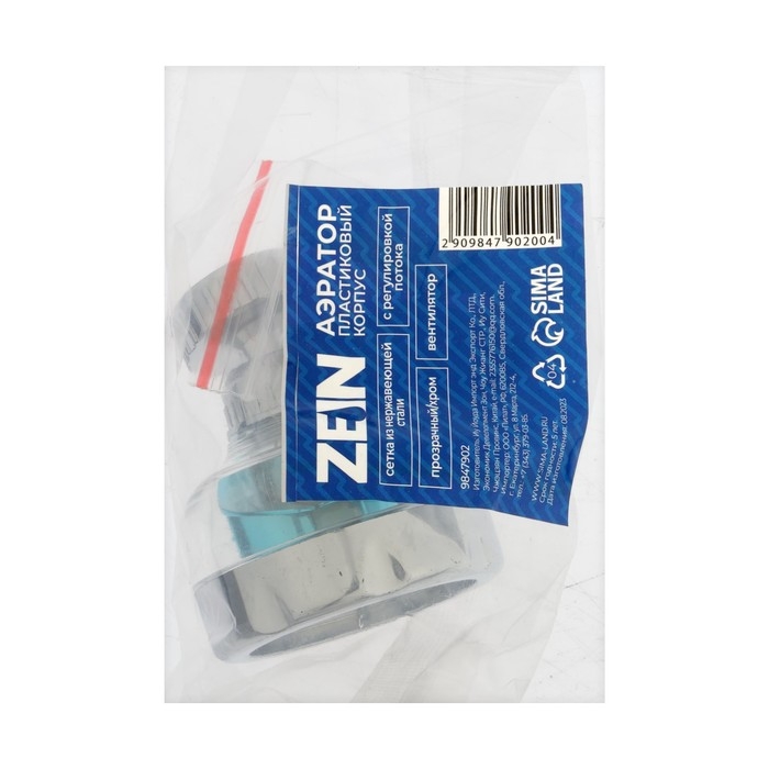 Аэратор ZEIN, регулировка потока, вентилятор, пластик, сетка нерж., прозрачный/хром