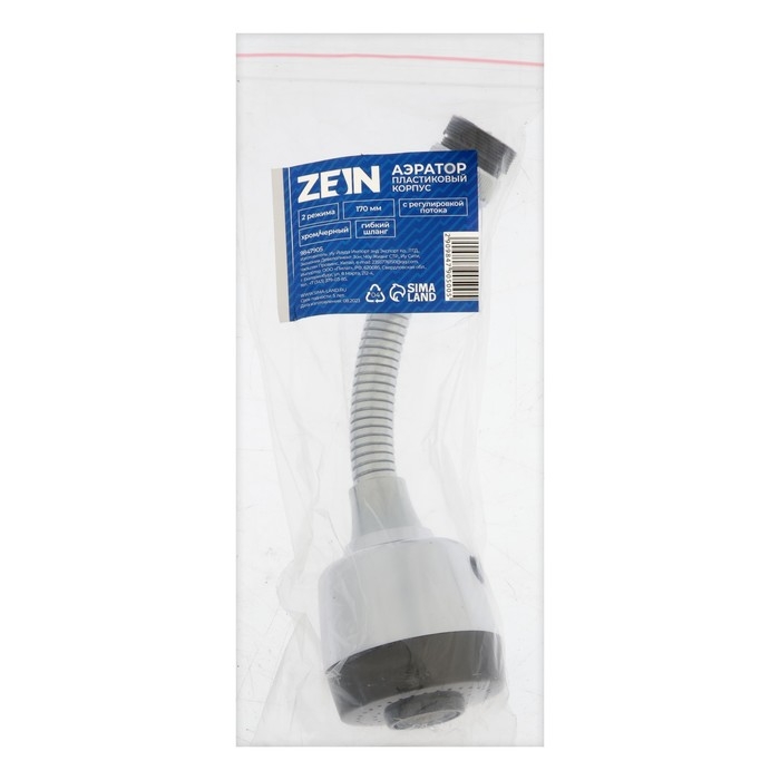 Аэратор ZEIN, регулировка потока, на гибком шланге, 170 мм, 2 режима, пластик, хром/черный