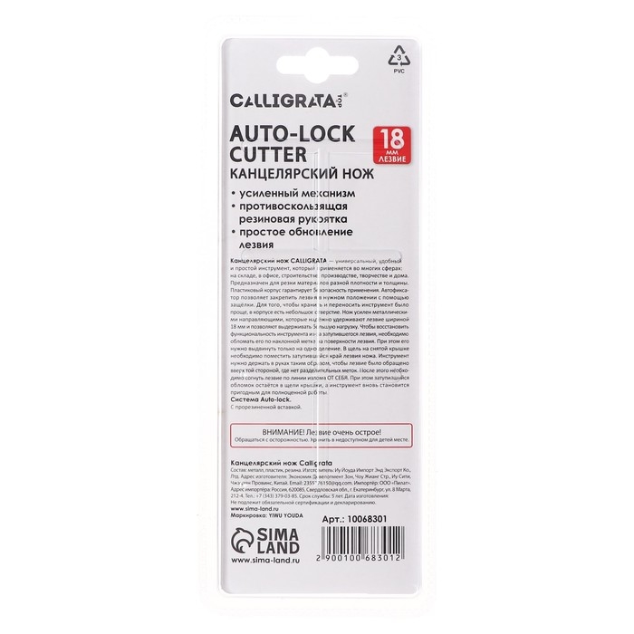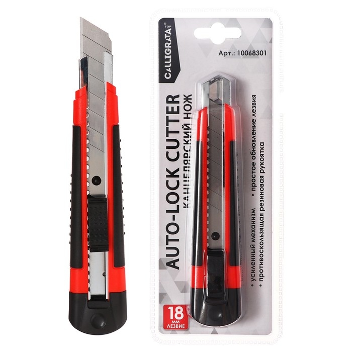 Нож канцелярский 18мм, пластиковый, фиксатор, прорезиненный, TOP