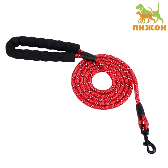 Поводок светоотражающий круглый, с эргономической ручкой, 180 х 0,8 см, красный