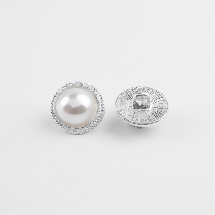 Набор пуговиц на ножке «Жемчуг», d = 13 мм, 5 шт, цвет серебряный/белый