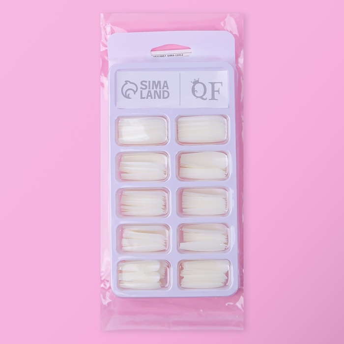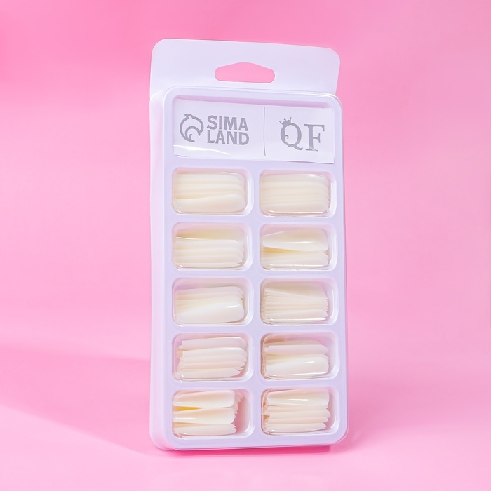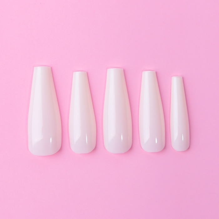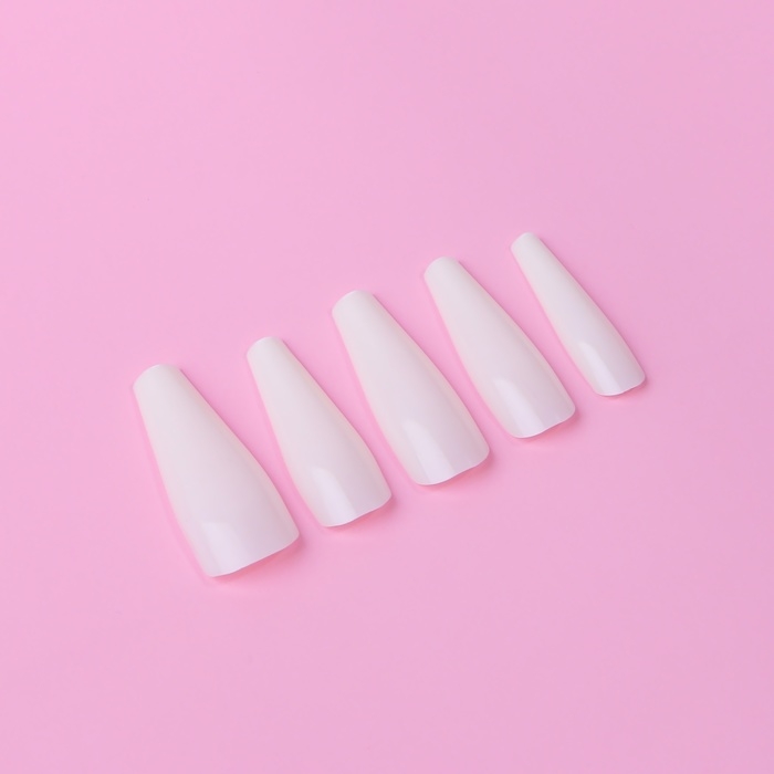 Накладные ногти, 100 шт, форма балерина, в контейнере, цвет молочный