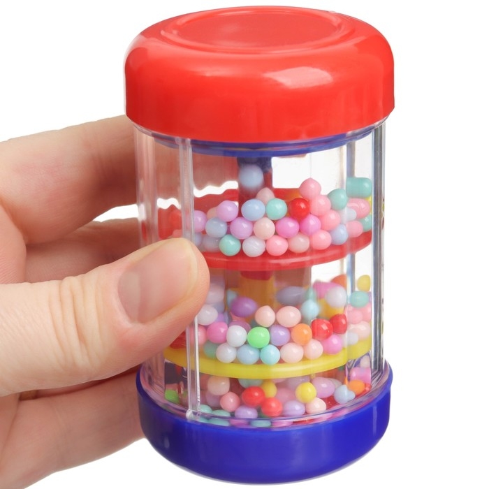 Звуки шума дождя, которые издает погремушка, помогают развивать его аудиальные навыки и способности.