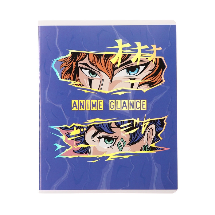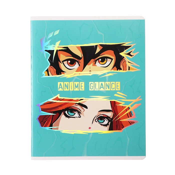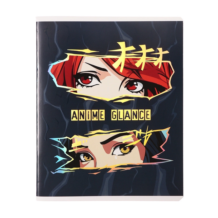Тетрадь 48 листов в клетку "Аниме глаза", обложка мелованный картон, выборочный УФ-лак, тиснение фольгой, блок 70 г/м2, МИКС
