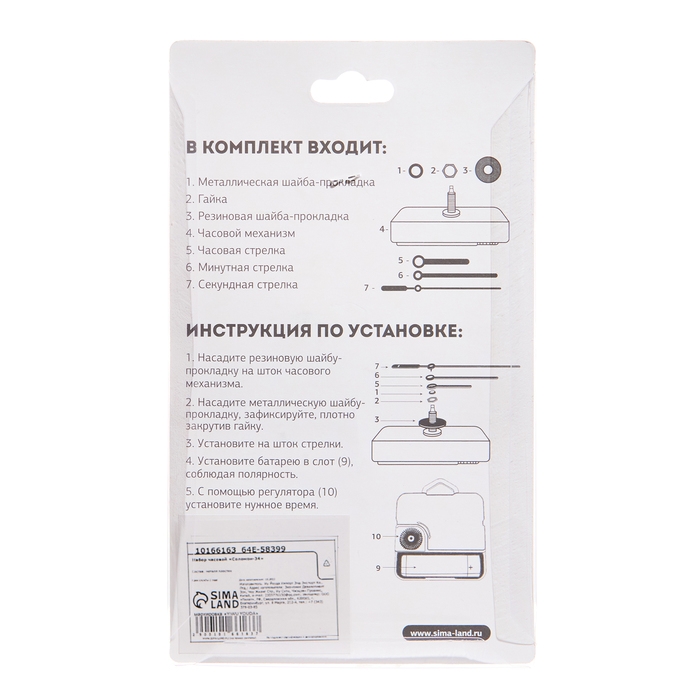 Часовой механизм со стрелками «Соломон-34», плавный ход, шток 16 мм, стрелки 67/100/105 мм