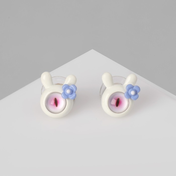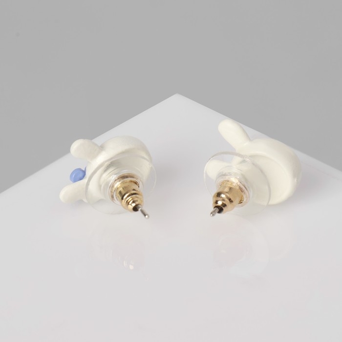 Серьги с эмалью «Монстрики» зайцы, цвет белый