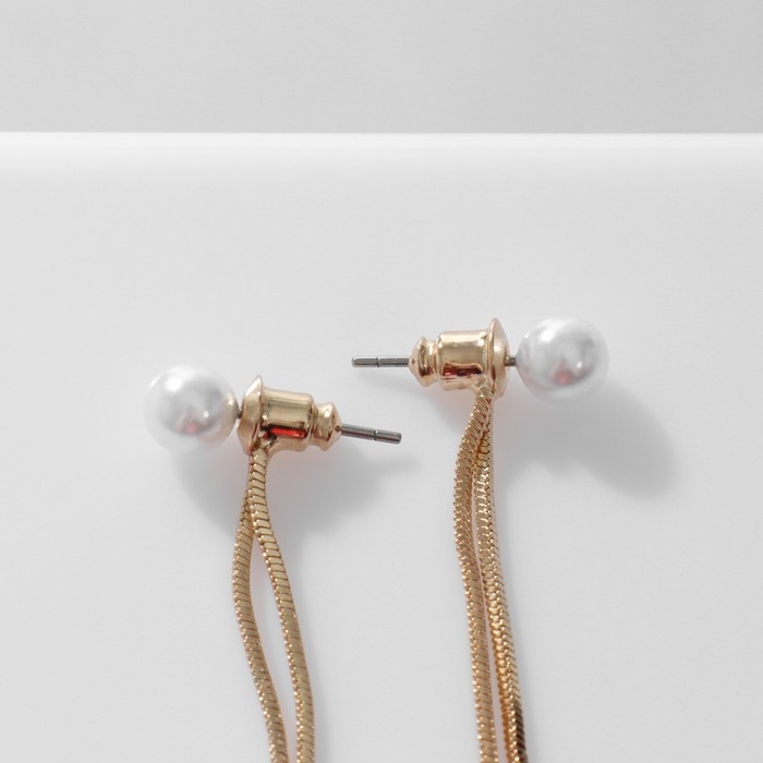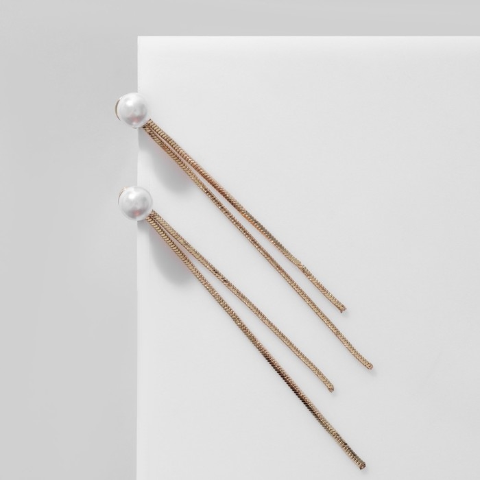 Серьги с жемчугом «Цепочки» бусина, цвет белый в золоте