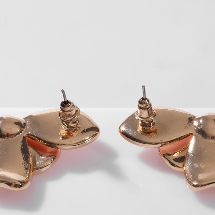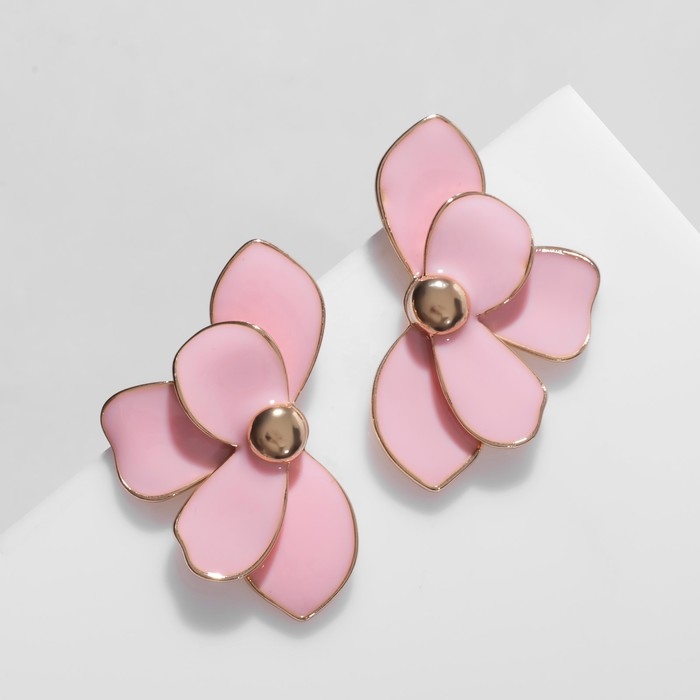 Серьги эмаль «Цветок» половинка, цвет розовый в золоте