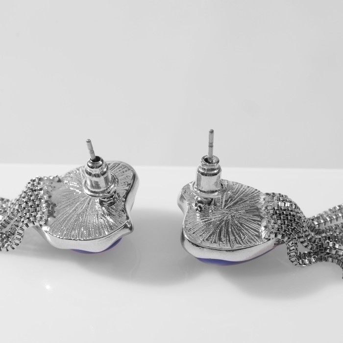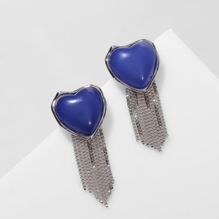 Серьги ассорти «Сердце» с цепочками, цвет синий в серебре