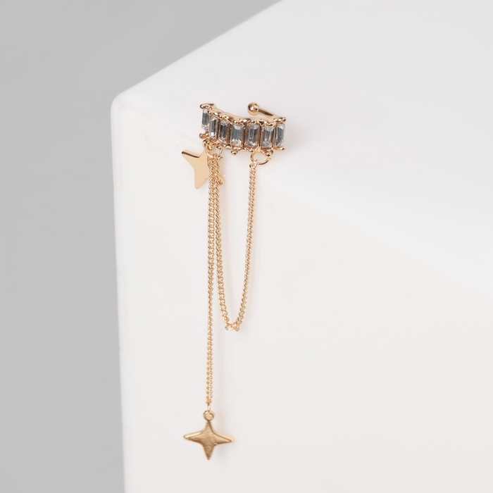 Серьга «Кафф» северная звезда с цепью, цвет белый в серебре