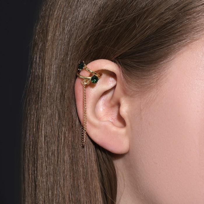 Серьга «Кафф» два кольца, цвет изумрудный в золоте