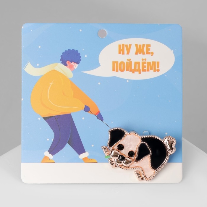 Брошь «Щенок», цвет чёрно-белый в розовом золоте