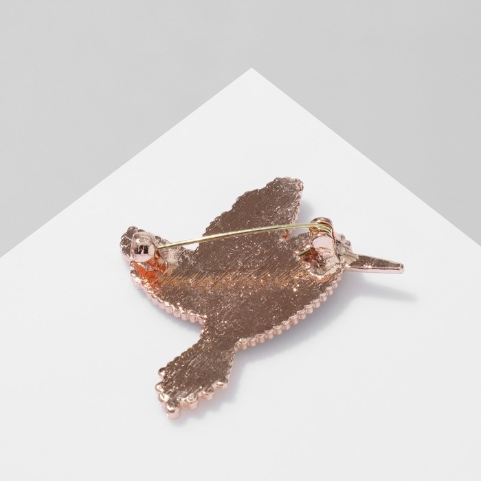 Брошь «Птица», цветная в розовом золоте