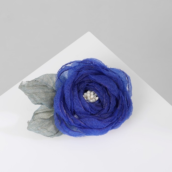 Брошь-заколка текстильная «Цветок» пион, цвет серый