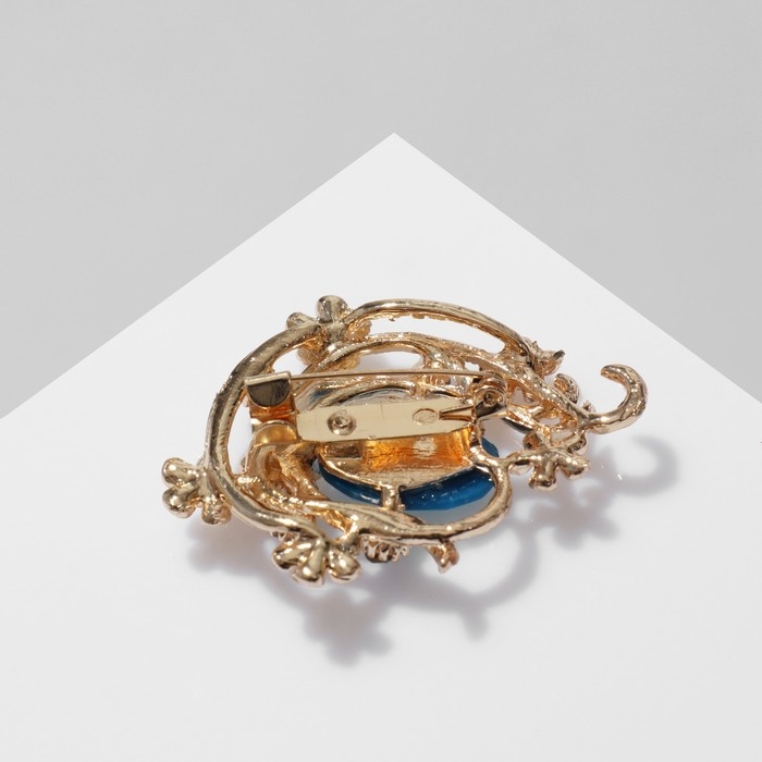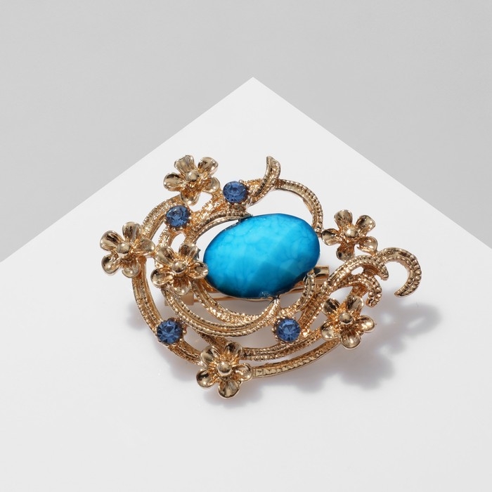 Брошь «Цветочная» арфа, цвет морской в золоте