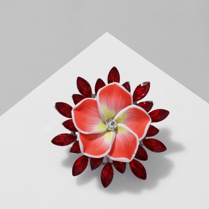 Брошь «Цветок» франжипани, цвет красный в серебре