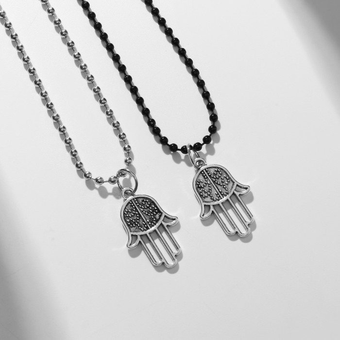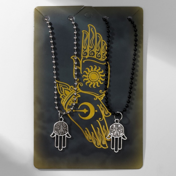 Кулоны «Неразлучники» рука хамса, цвет чёрно-серебряный, 45 см