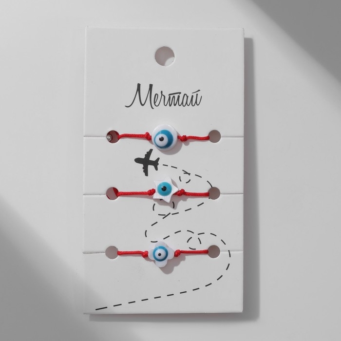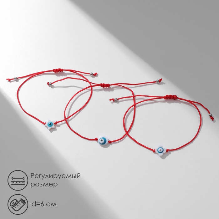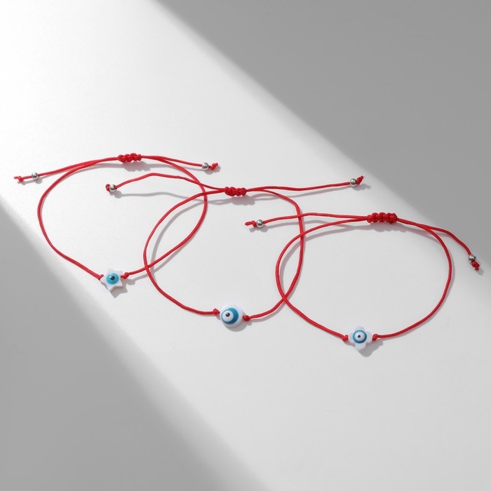 Браслет-оберег «Красная нить» набор 3 шт., глазик, цвет бело-голубой