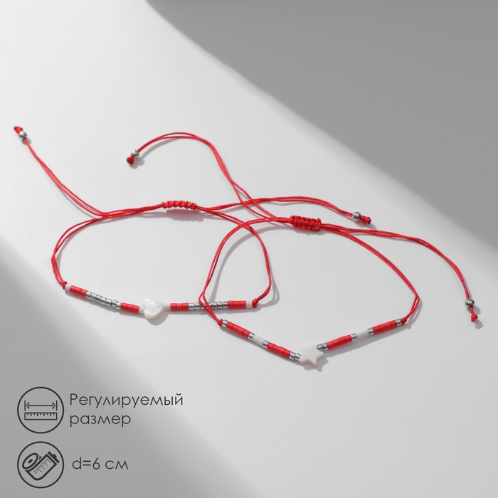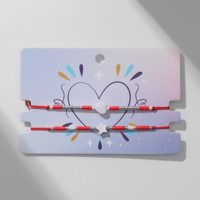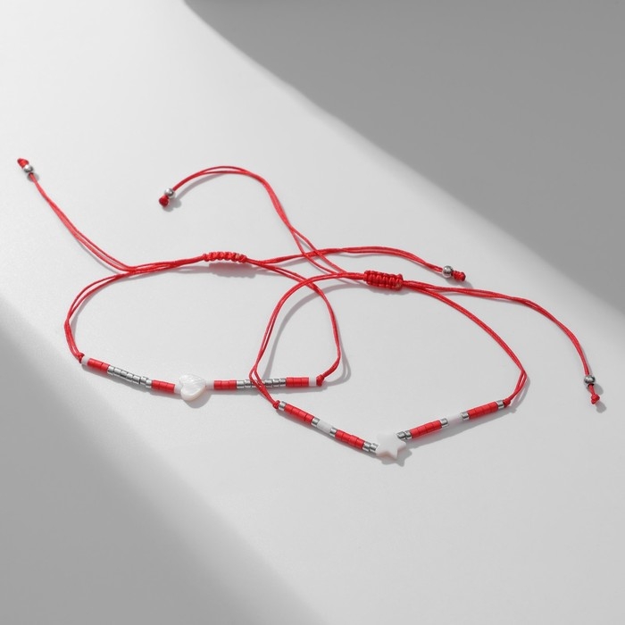 Браслет-оберег «Нить Красная нить» набор 2 шт., сердце, цвет красно-белый