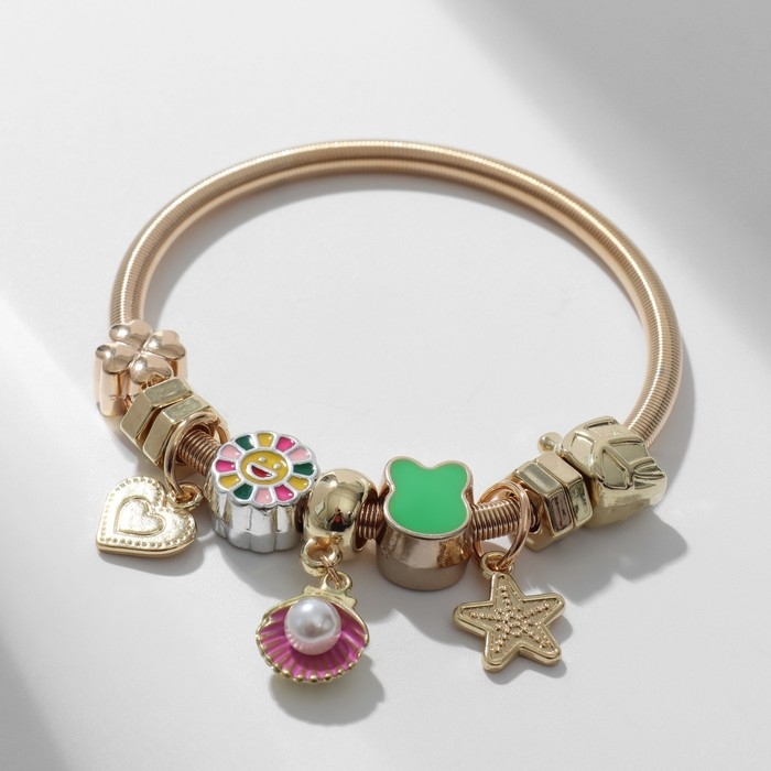 Браслет ассорти «Марджери» одинарный, ассорти, цветной в золоте