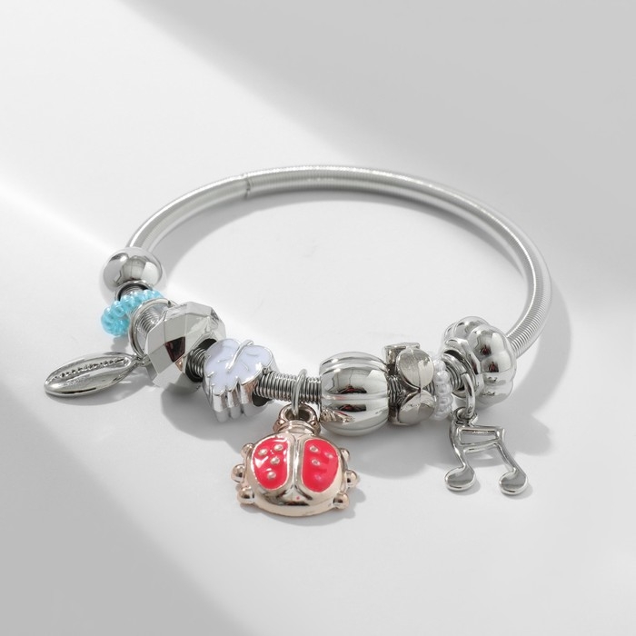 Браслет ассорти «Марджери» одинарный, божья коровка, цветной в серебре