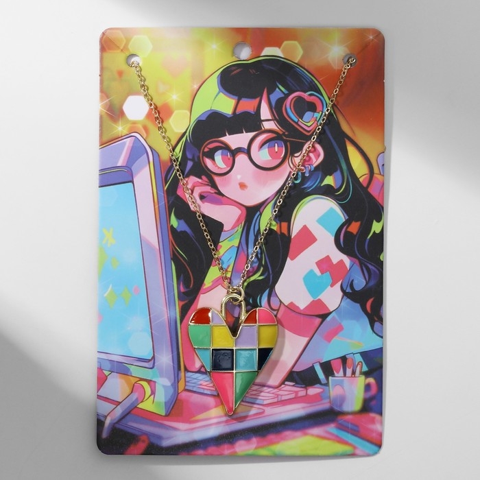 Кулон «Прелесть» сердце, цветной в золоте, 40 см