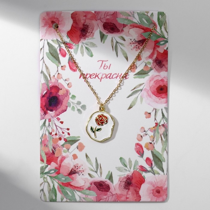 Кулон «Прелесть» роза, цветной красно-белый в золоте, 40 см