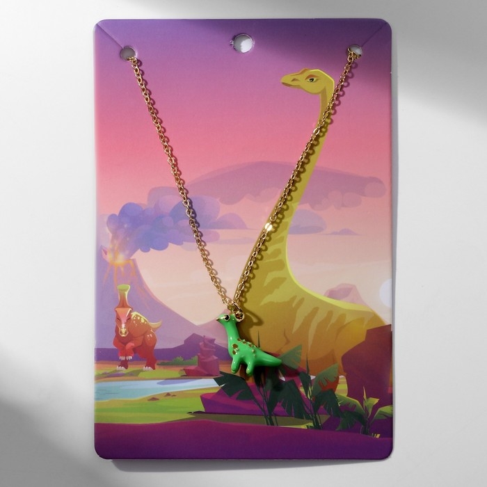 Кулон «Прелесть» динозавр, цвет зелёный в золоте, 40 см