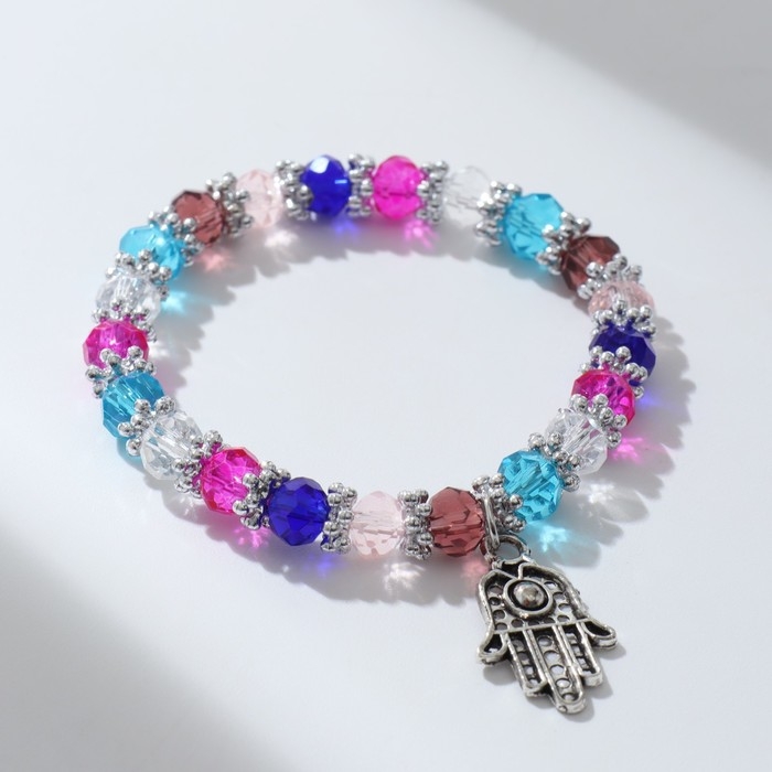 Браслет-оберег «Детский» бусины, рука хамса, цветной