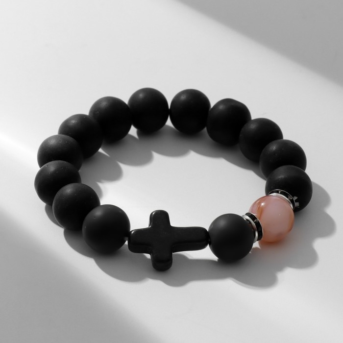 Браслет мужской «Стойкость» крест, бусины №12, цвет коричнево-чёрный