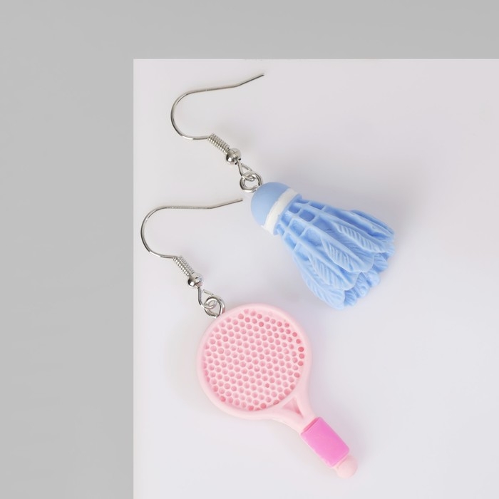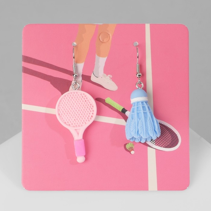 Серьги ассорти «Радость» ракетка и волан, цвет сине-розовый в серебре
