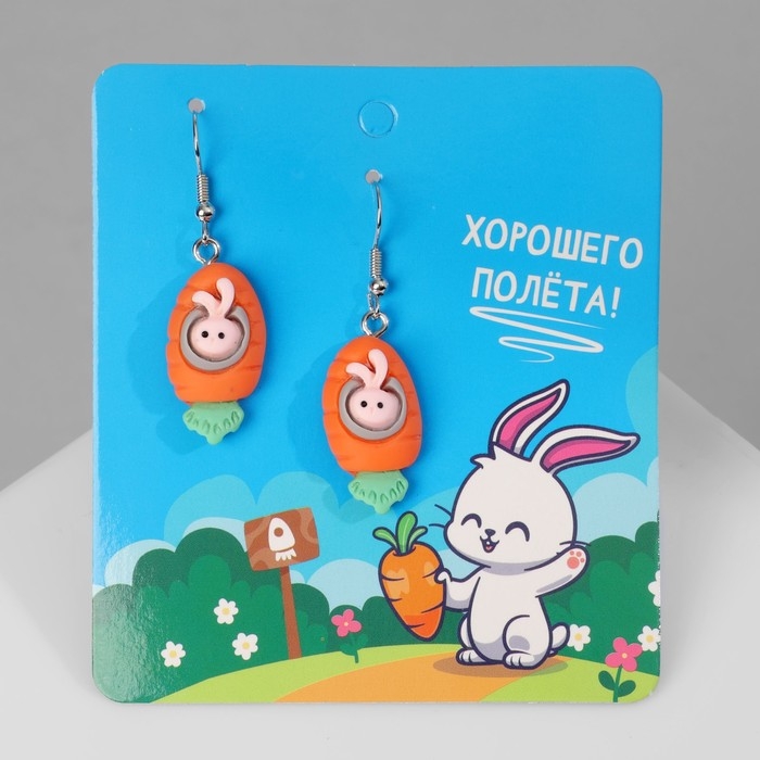 Серьги ассорти «Радость» зайцы в ракете, цветные в серебре