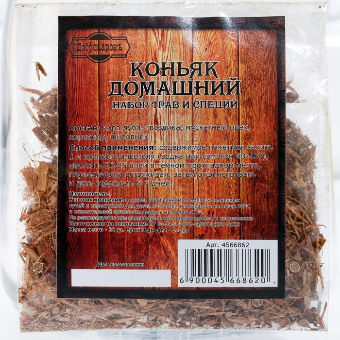 Набор для приготовления домашнего коньяка, бутылка 1 л., набор приправ