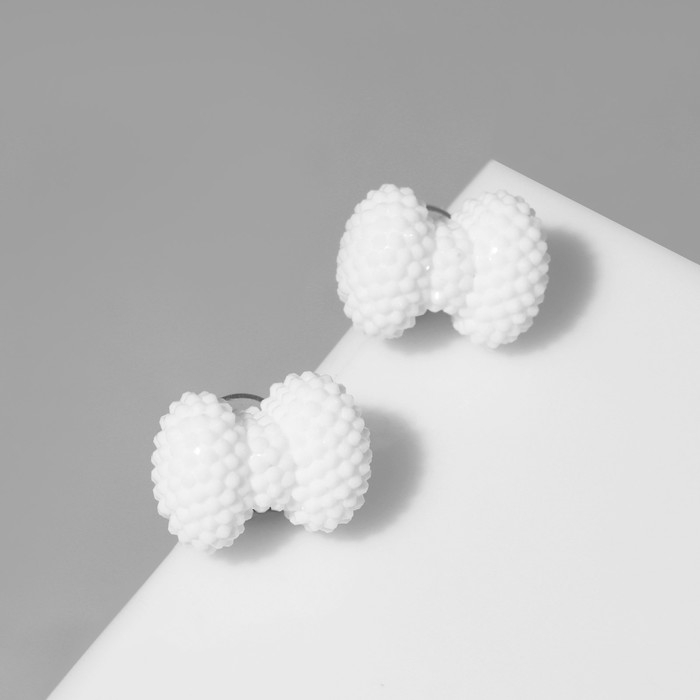 Серьги пластик «Карамель» бант, цвет белый
