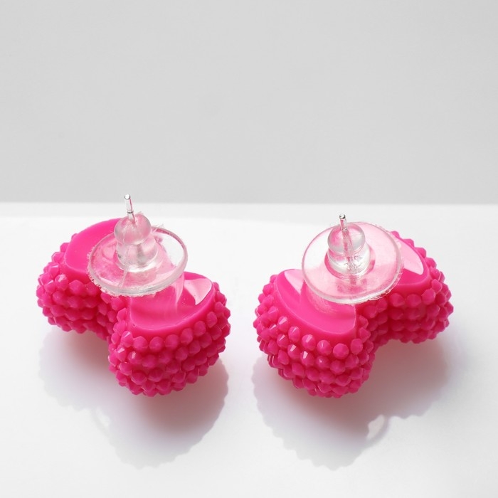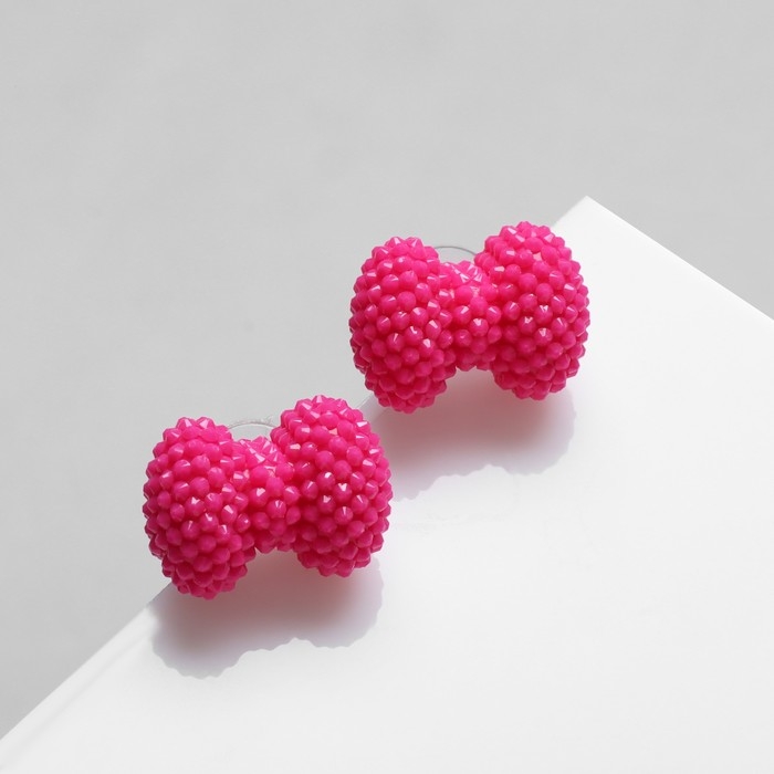 Серьги пластик «Карамель» бант, цвет ярко-розовый